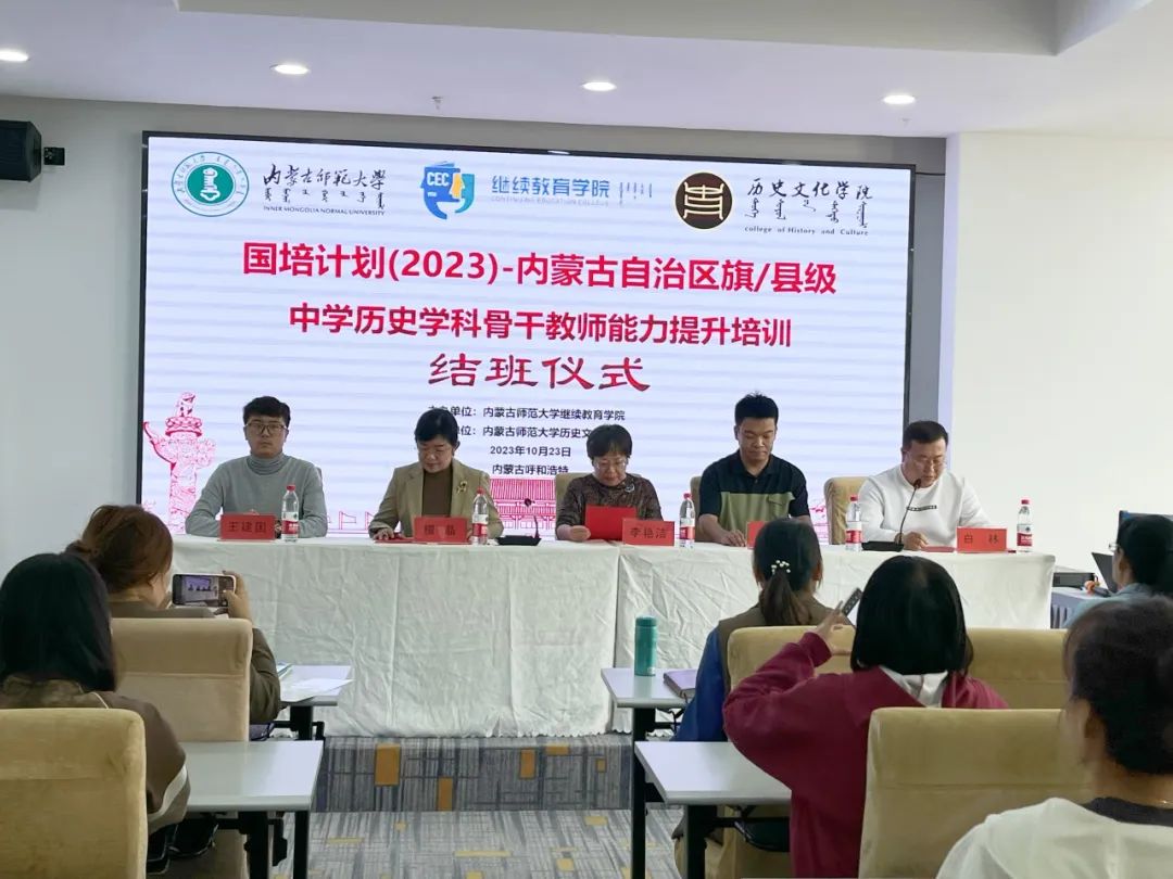2023年10月23日下午,由必赢bwin线路检测中心继续教育学院主办、必赢bwin线路检测中心承办的“国培计划(2023)”——内蒙古自治区旗(县)级初中历史学科骨干教师培训班结班仪式在呼和浩特市赛罕区长安金座酒店四楼会议室举行。必赢bwin线路检测中心继续教育学院培训部、自治区国培项目执行办公室王宣智老师,必赢bwin线路检测中心党委书记李艳洁,党委副书记、副院长檀晶,副院长白林,培训班班主任王建国及50名参训学员参加仪式,结班仪式由必赢bwin线路检测中心副院长白林主持。