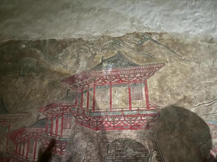 由于乾陵尚未打开,无法窥见其中原貌,史学家便根据一些文物史料,推测并想象了乾陵里的景象,并构造出了一个场馆供人们参观,我们也简要参观了这个展厅。